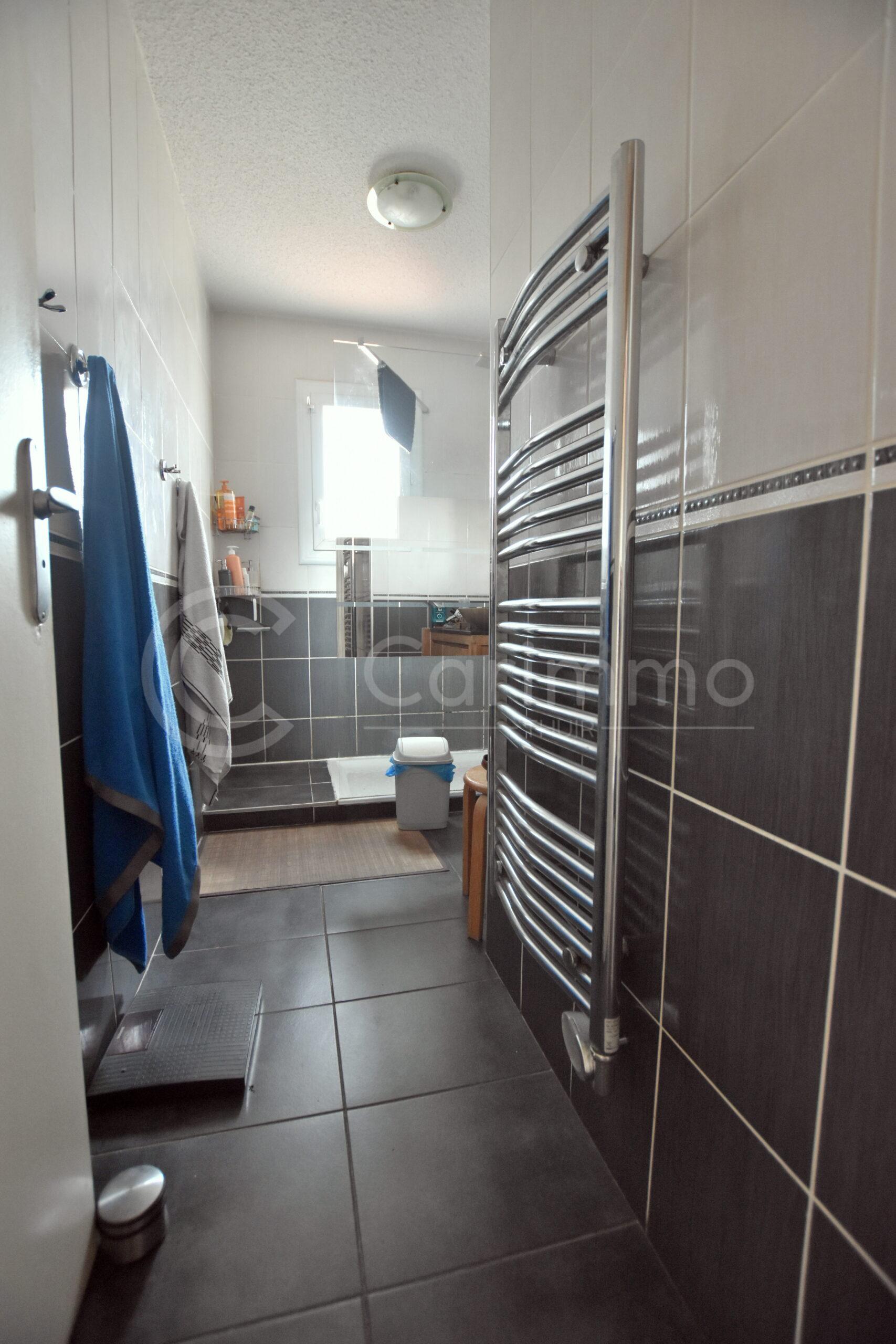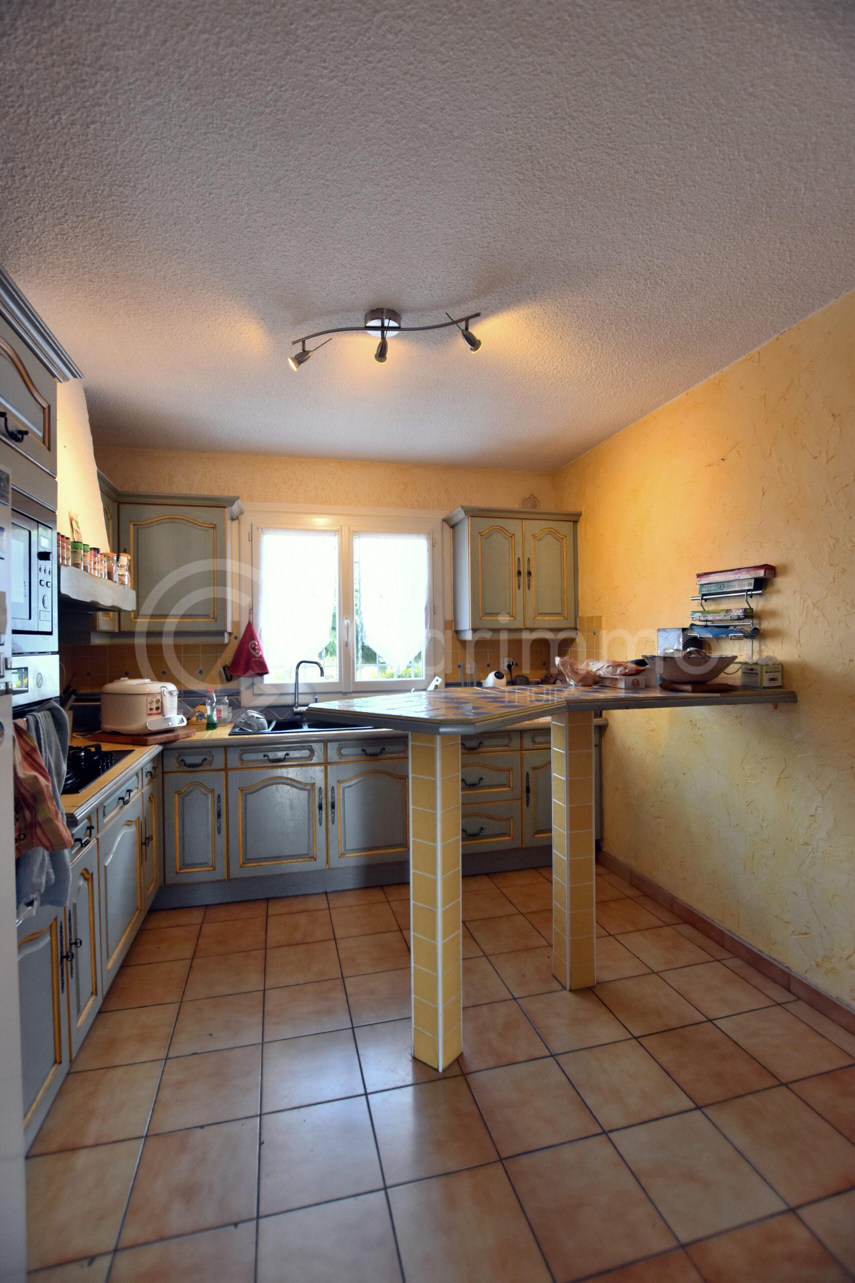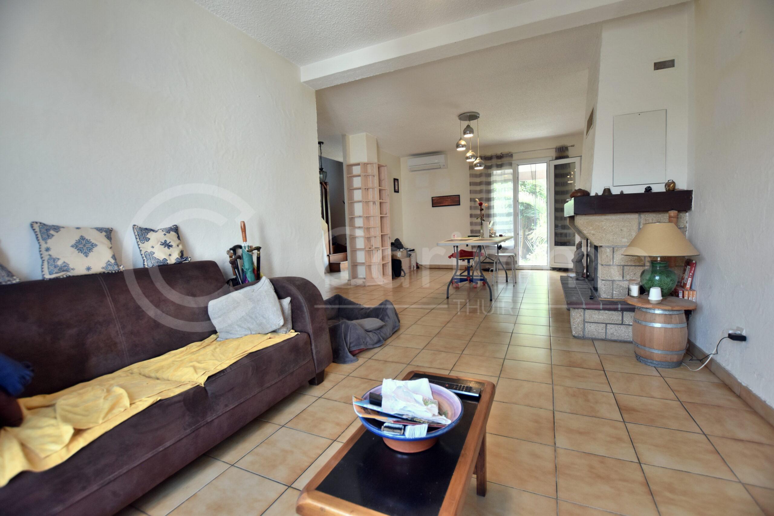 Villa de type T5, construction traditionnelle R+1, proposant 103m² habitables + Garage de 15m², l’ensemble édifié sur une parcelle de 300m² environ.