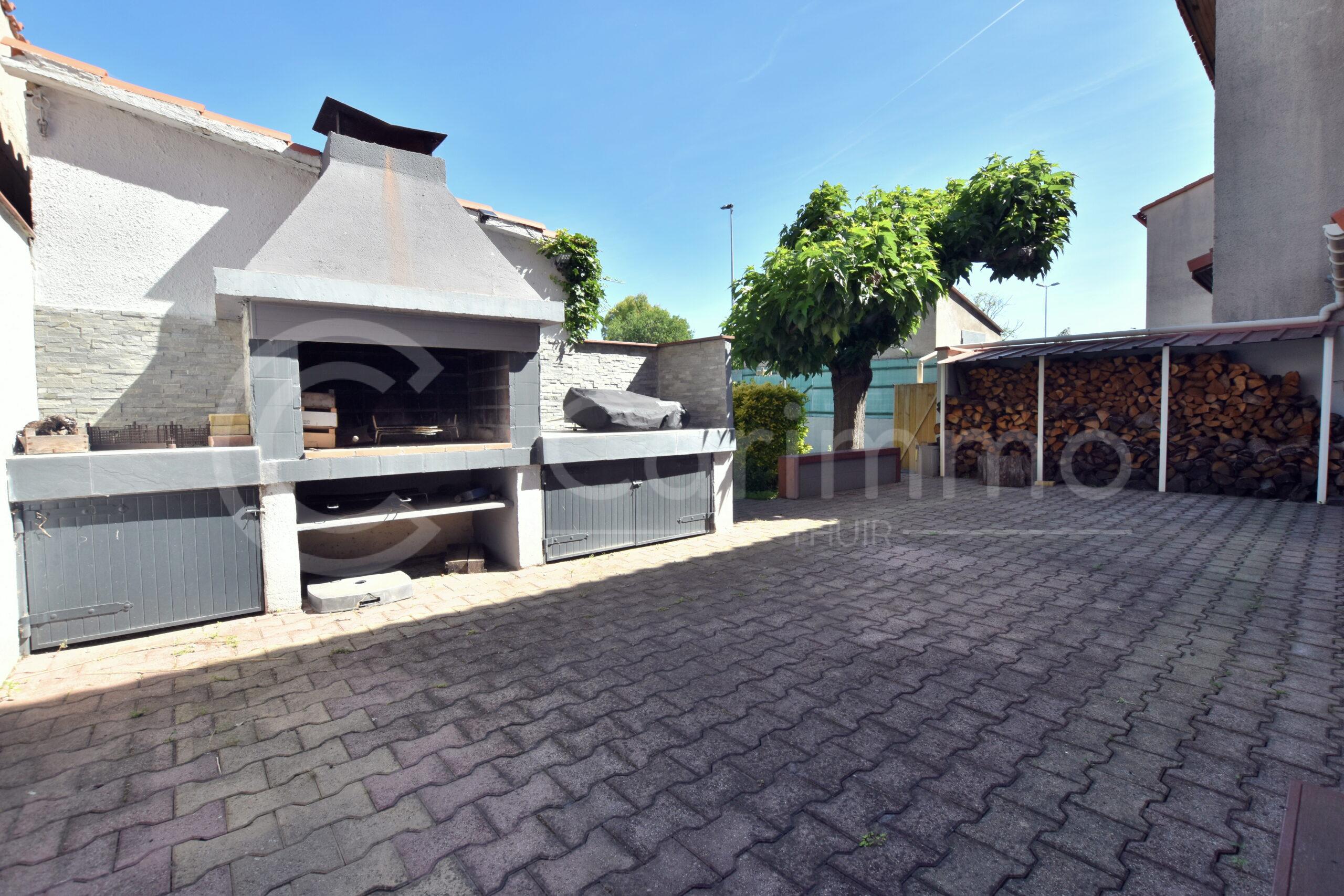 Les extérieurs sont arborés et soignés: Grande Terrasse de 41m² avec BBQ, récupérateur d’eau 500l, Cabanon de 11m², Carport pour un véhicule