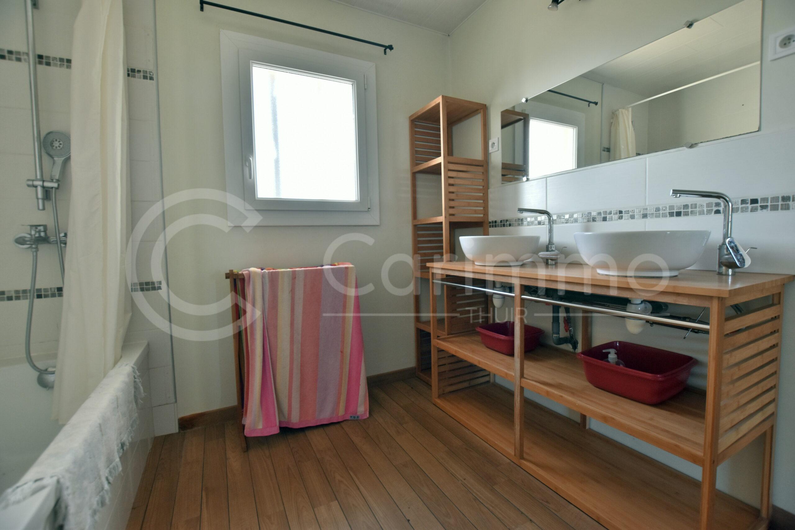 Prestations soignées: Double vitrage, volets roulants électriques et volets bois à la française, Cuisine Arthur Bonnet avec plan céramique, Parquet stratifié classe 3/4, …
