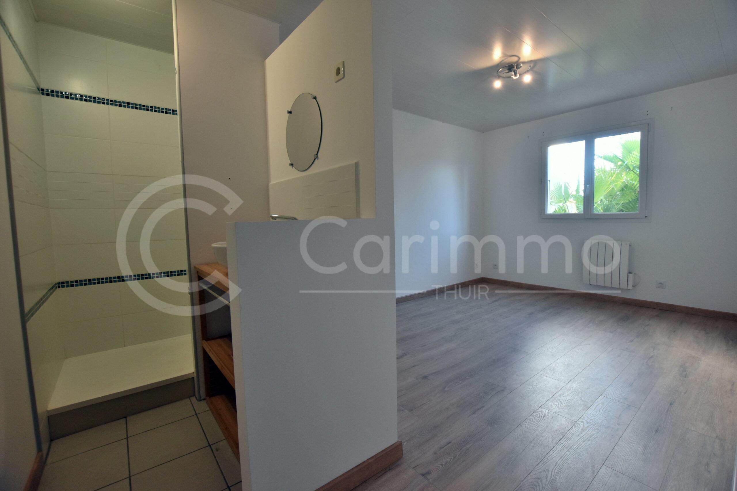 Au rez-de-chaussée, grand espace de 46m² laissant de nombreuses possibilités d’aménagement: salon, chambre/studio ou usage professionnel;