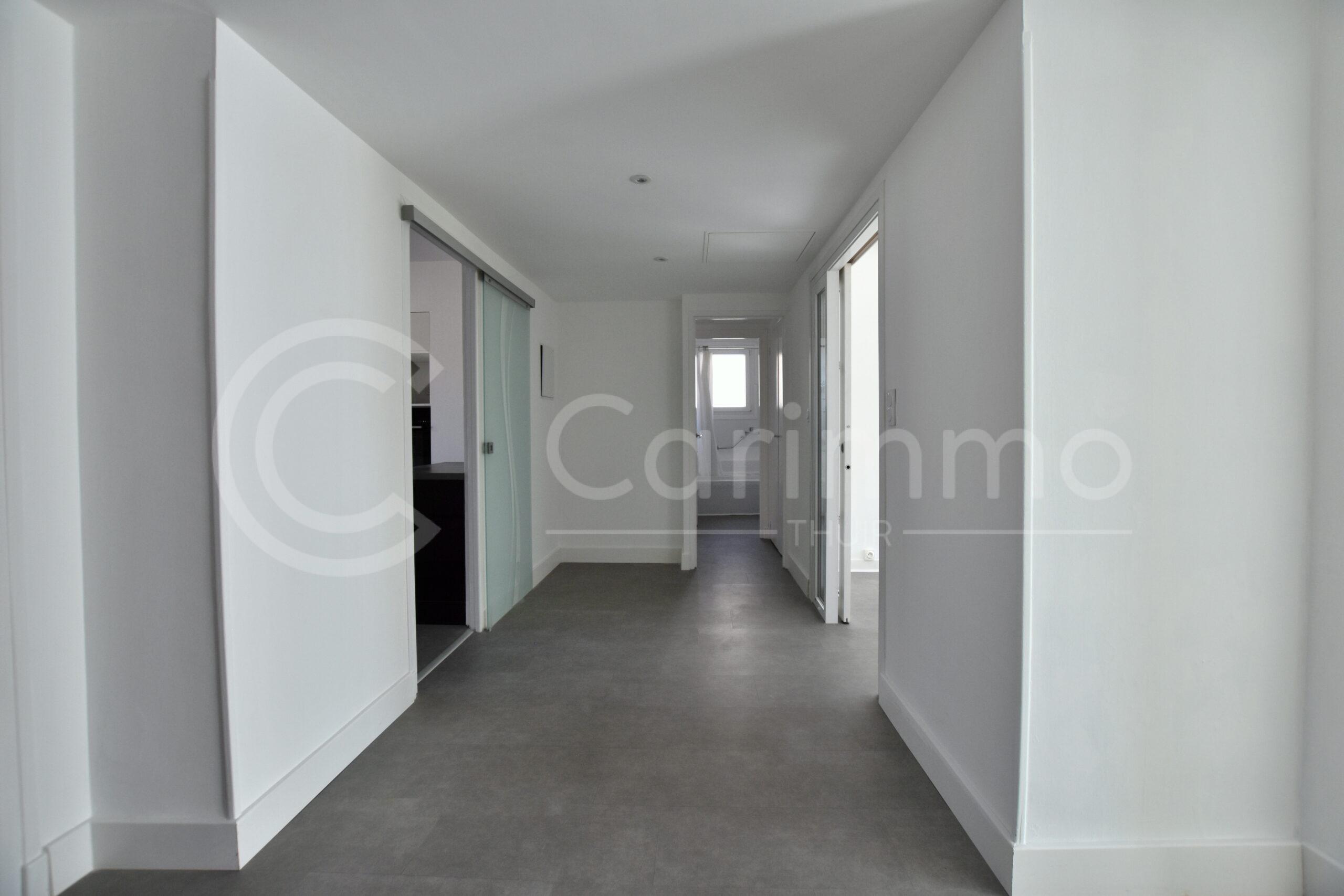 Vaste hall d’entrée de 8m² s’ouvrant sur l’ensemble des pièces, Salon séjour de 30m² avec 2 baies vitrées laissant entrer la lumière, Cuisine indépendante équipée, les deux pièces donnant accès à de beaux balcons;
